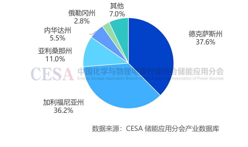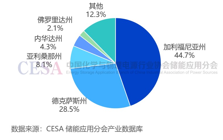 圖 美國(guó)各州大規(guī)模電池儲(chǔ)能項(xiàng)目累計(jì)裝機(jī)功率占比