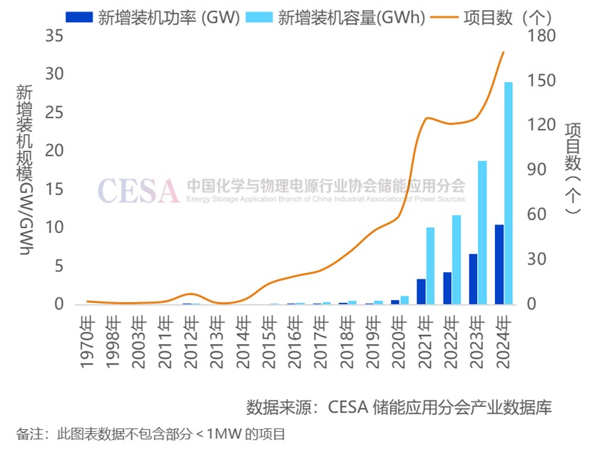 圖 2024年美國(guó)大規(guī)模電池儲(chǔ)能投運(yùn)規(guī)模及項(xiàng)目數(shù)量