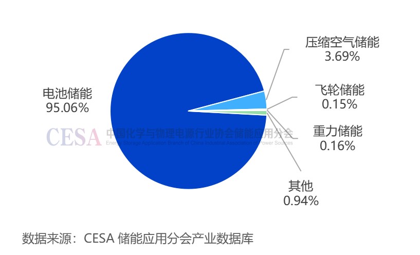 圖 美國(guó)新型儲(chǔ)能不同技術(shù)路線累計(jì)裝機(jī)功率占比