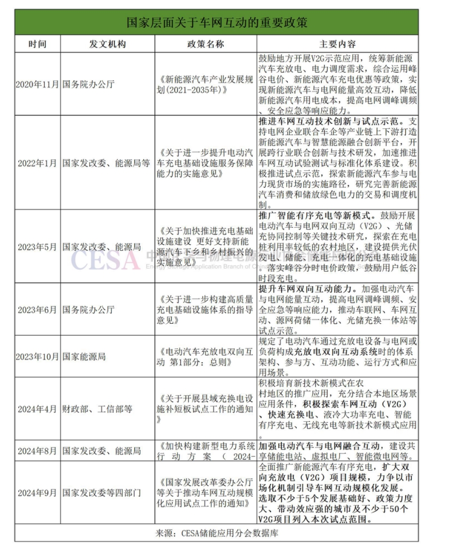 政策層面,2020年至2024年,國家發(fā)展改革委等部門發(fā)布了系列政策鼓勵(lì)車網(wǎng)互動發(fā)展。