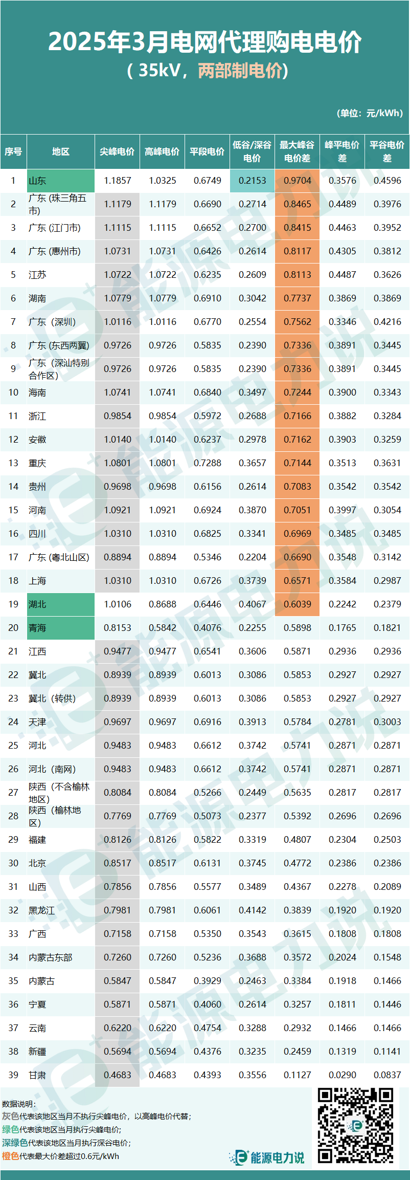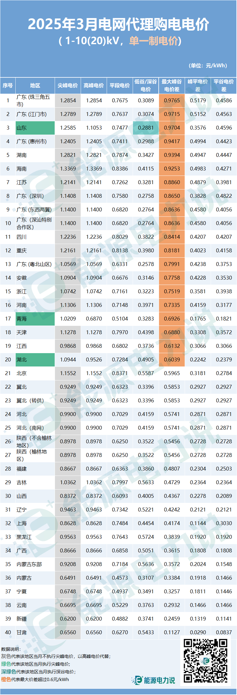 中國儲能網(wǎng)訊:目前,各地區(qū)2025年3月電網(wǎng)代購電價已公布,能源電力說對各地一般工商業(yè)10(20)kV單一制電價、10(20)kV兩部制電價、大工業(yè)35kV兩部制電價進行了匯總。