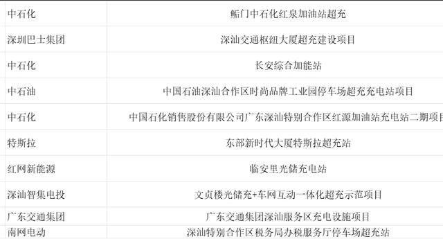 除了普通充電站以外,深汕特別合作區(qū)已新建或改造以下超充場(chǎng)站: