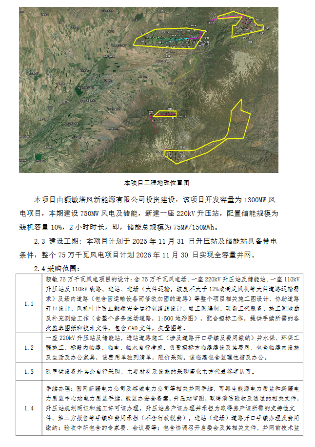 本項(xiàng)目計(jì)劃于2025年11月31日升壓站及儲(chǔ)能站具備帶電條件,整個(gè)75萬(wàn)千瓦風(fēng)電項(xiàng)目計(jì)劃2026年11月30日實(shí)現(xiàn)全容量并網(wǎng)。
