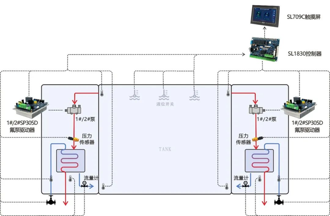 在單系統(tǒng)內(nèi),浸沒式液冷方案可同時(shí)驅(qū)動(dòng)雙泵并聯(lián)運(yùn)行,并支持主備自動(dòng)切換。即使單泵突發(fā)故障,備份泵將在0.5秒內(nèi)接管工作,流量波動(dòng)控制在±3%以內(nèi)。