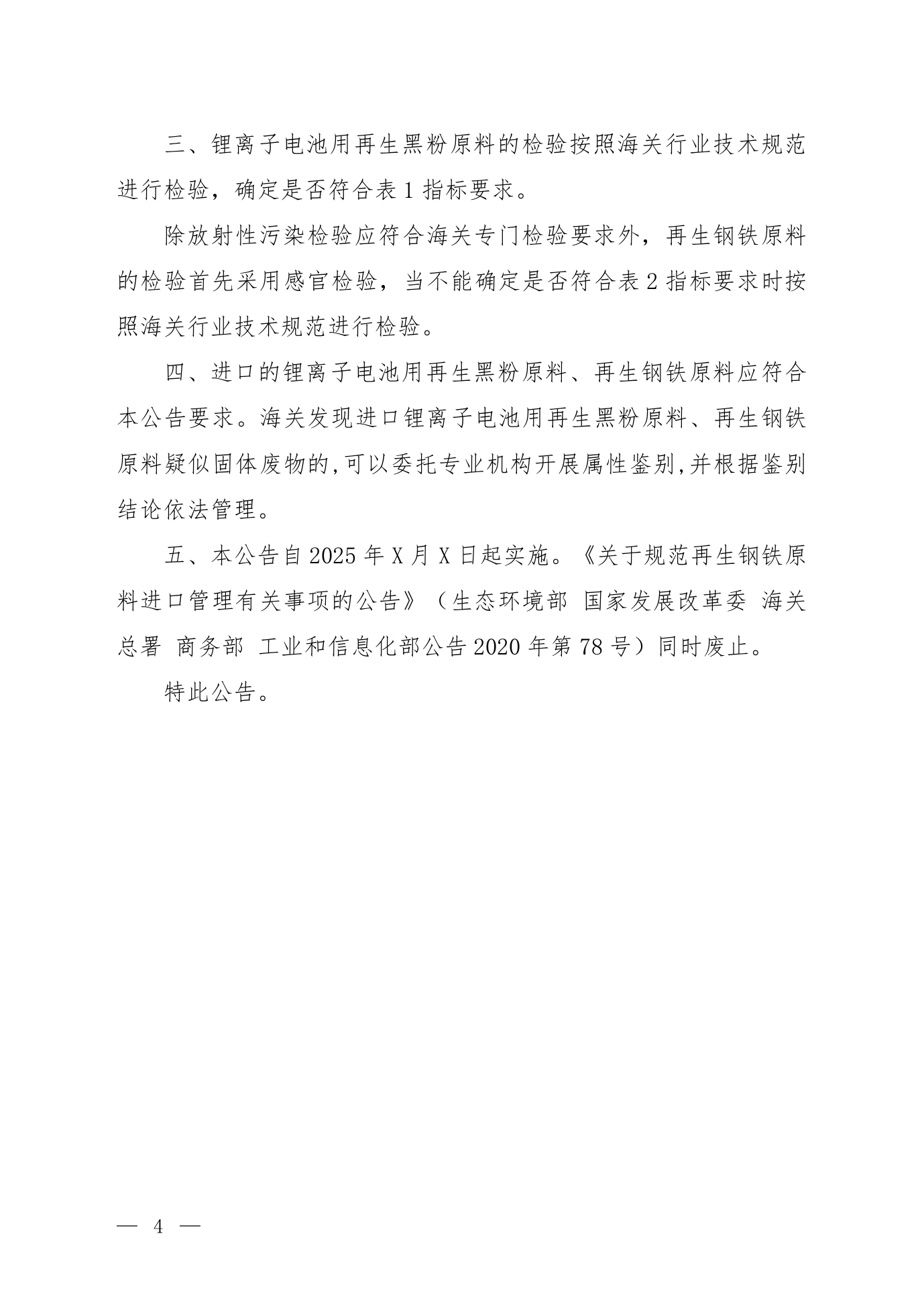 1.關(guān)于規(guī)范鋰離子電池用再生黑粉原料、再生鋼鐵原料進(jìn)口管理有關(guān)事項(xiàng)的公告(征求意見稿)