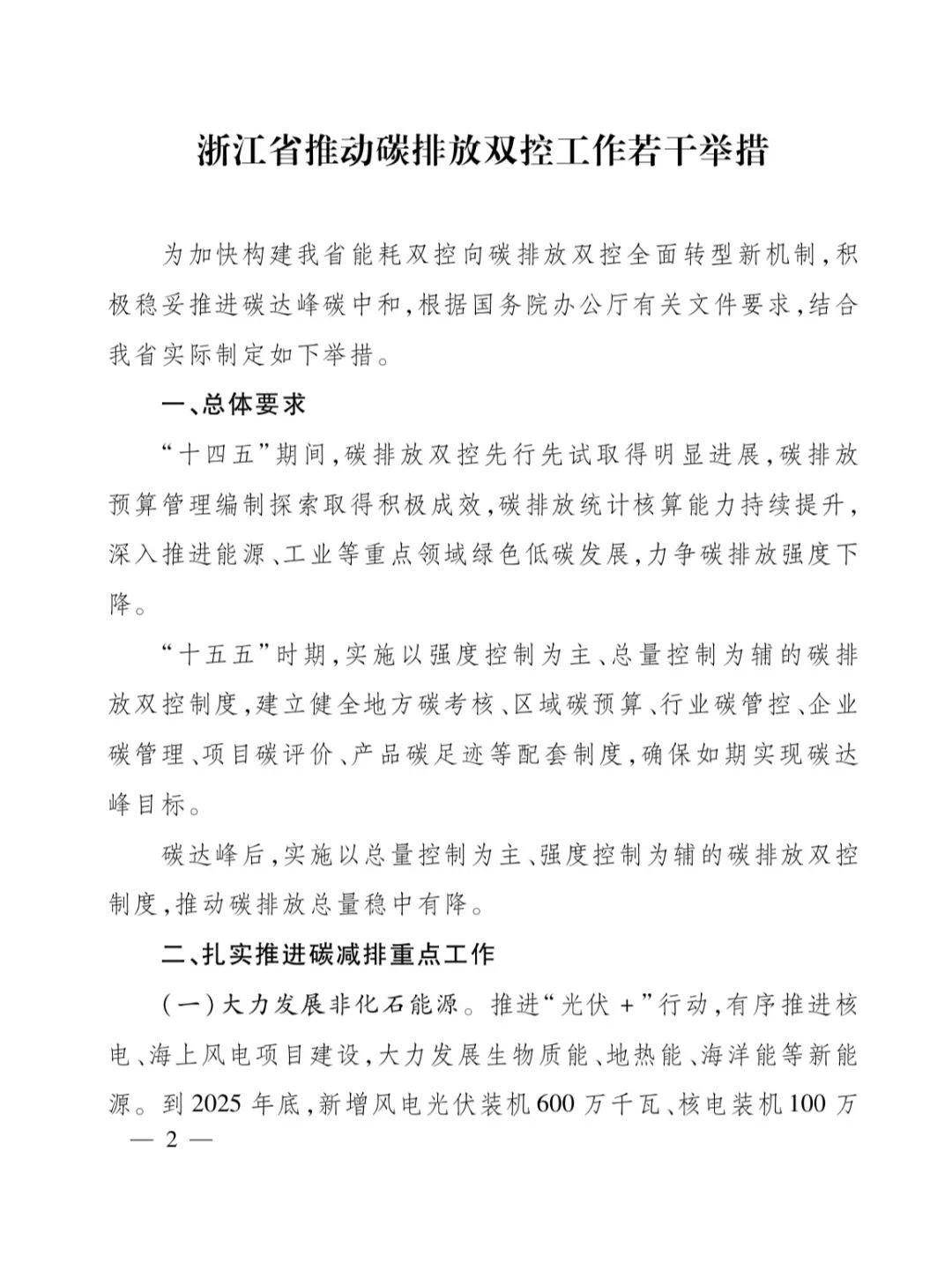 中國儲能網(wǎng)訊:近日,浙江省人民政府發(fā)布關(guān)于印發(fā)浙江省推動(dòng)碳排放雙控工作若干舉措的通知。