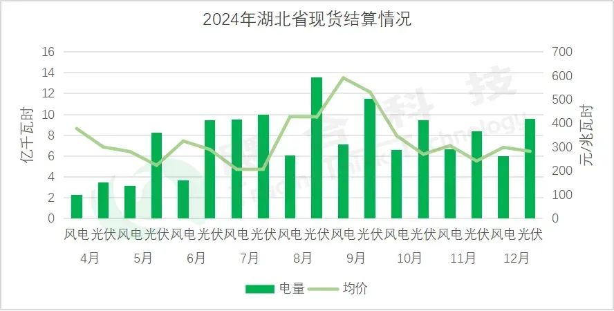 4月16日電力現(xiàn)貨市場(chǎng)開(kāi)展后,新能源部分上網(wǎng)電量按照優(yōu)先上網(wǎng)電量結(jié)算,視作保障性收購(gòu)電量。2024年4-12月結(jié)算均價(jià)332.22元/兆瓦時(shí)。