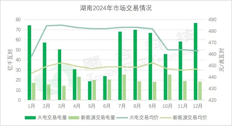 湖南:2024年1-12月湖南電力市場(chǎng)化交易合計(jì)交易電量876.46億千瓦時(shí),交易平均價(jià)差上浮17.69元/兆瓦時(shí)。其中新能源交易合同電量236.07億千瓦時(shí),平均交易價(jià)差下浮1.64元/兆瓦時(shí);外購(gòu)電中進(jìn)入市場(chǎng)電量218.6億千瓦時(shí),平均交易價(jià)差上浮15.18元/兆瓦時(shí)。