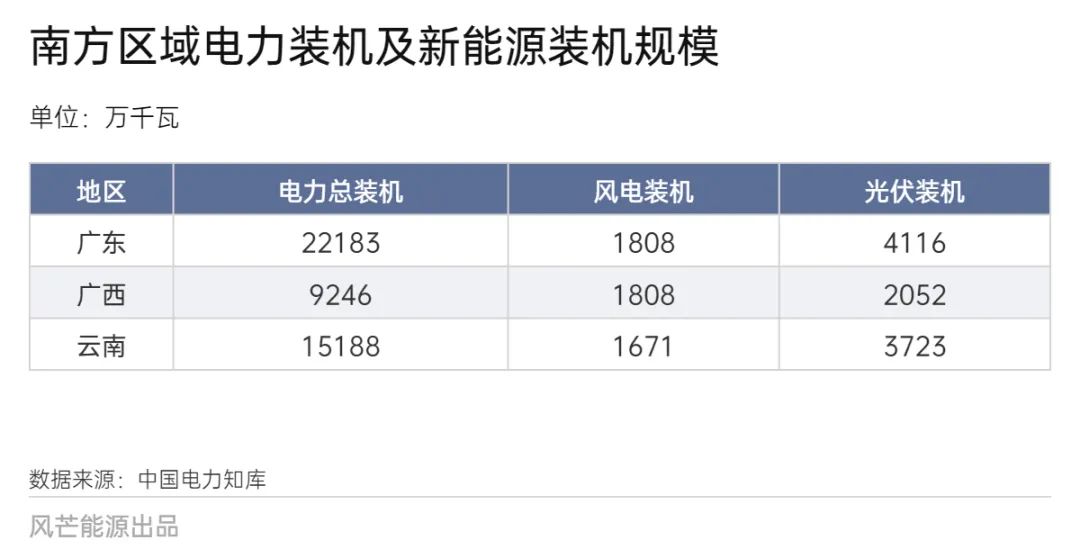 從裝機(jī)結(jié)構(gòu)來(lái)看,從南方3省電源結(jié)構(gòu)迥異,除“新能源非主導(dǎo)電源”這一共同點(diǎn)外,廣東、廣西及云南電力裝機(jī)各有特點(diǎn)。