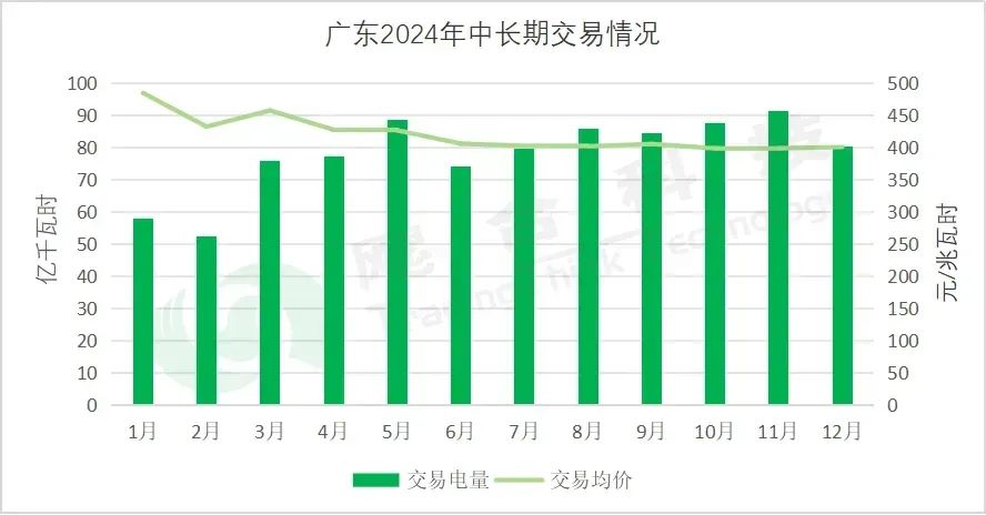 廣西:廣西2024年累計(jì)直接交易成交電量1102.48億千瓦時(shí),平均成交價(jià)格444.85元/兆瓦時(shí),較燃煤基準(zhǔn)上網(wǎng)電價(jià)上漲24.15元/兆瓦時(shí)。從10月開(kāi)始交易價(jià)格開(kāi)始極速降低,至12月平均成交價(jià)降至406.70元/兆瓦時(shí),較燃煤基準(zhǔn)上網(wǎng)電價(jià)下降14元/兆瓦時(shí)。