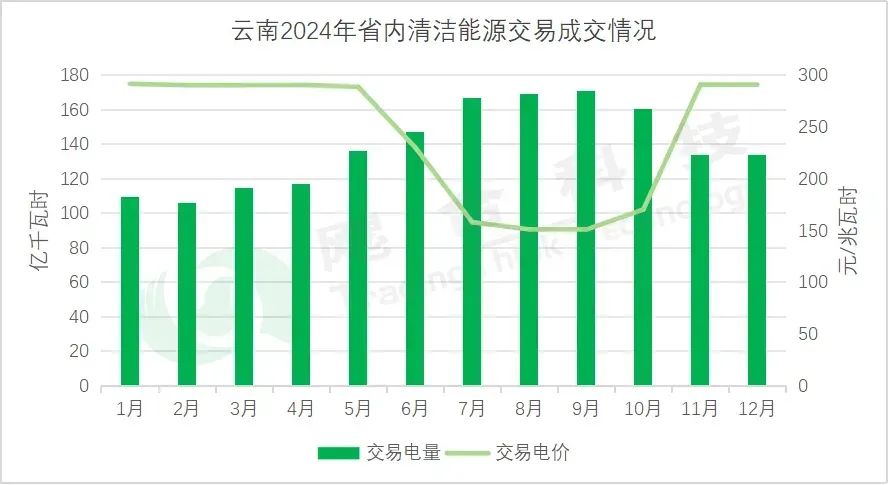 云南:2024年1-12月,云南省內(nèi)市場(chǎng)化交易電量共2101.67億千瓦時(shí),其中清潔能源交易成交電量為1664.71億千瓦時(shí),成交均價(jià)為231.76元/兆瓦時(shí);綠電交易成交電量為16.63億千瓦時(shí),電能量?jī)r(jià)格成交均價(jià)228.93元/兆瓦時(shí)。