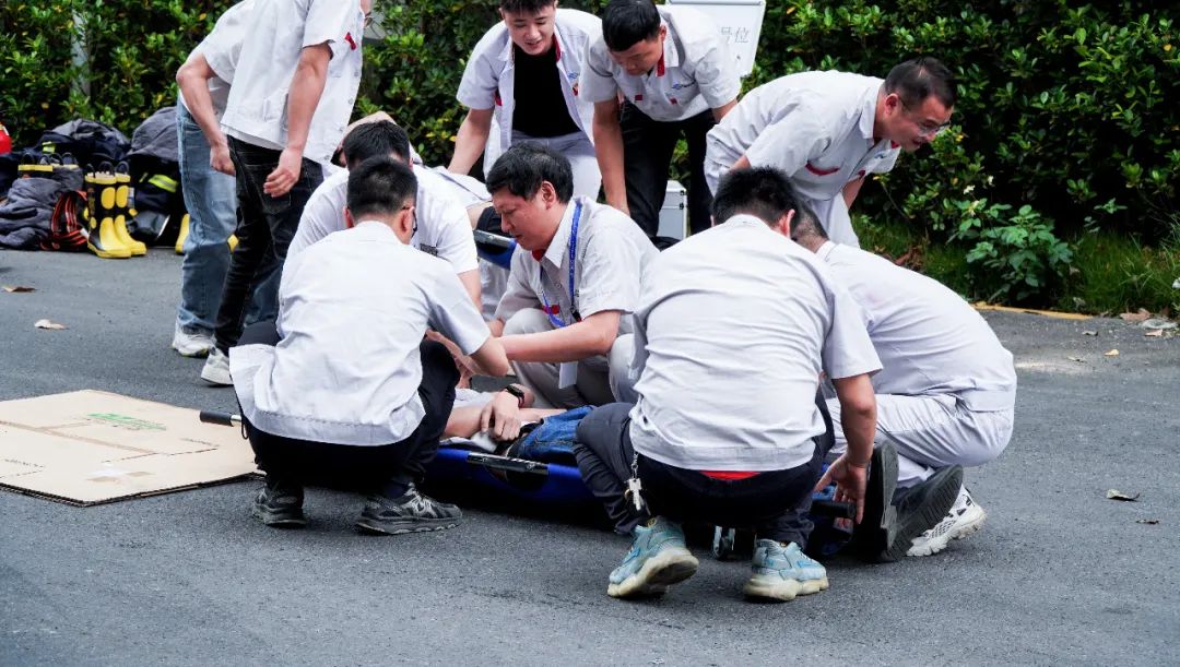 醫(yī)療救護(hù)聯(lián)動:模擬火災(zāi)中員工受傷場景,醫(yī)療組聯(lián)合救援力量開展心肺復(fù)蘇、燒傷處理及轉(zhuǎn)運(yùn)演練,確?!包S金救援時間”內(nèi)完成傷員救治。