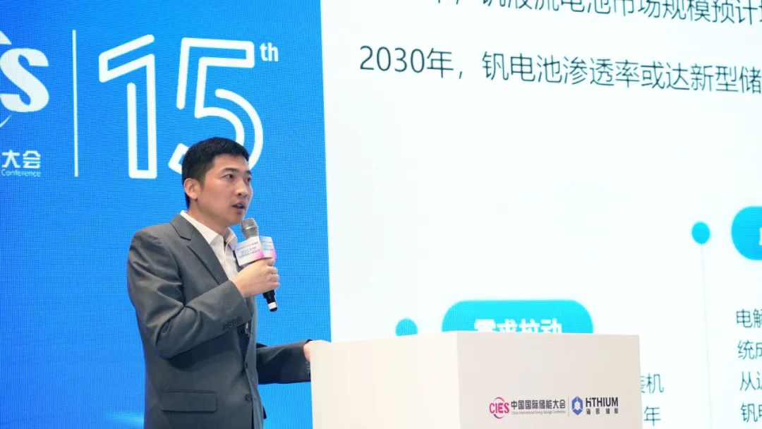 本屆展會(huì)以“綠色、數(shù)智、融合、創(chuàng)新”為主題,首次設(shè)立“液流電池專場(chǎng)論壇”,聚焦液流電池產(chǎn)業(yè)發(fā)展、技術(shù)突破、典型應(yīng)用場(chǎng)景等多個(gè)維度解析行業(yè)發(fā)展痛點(diǎn)及未來(lái)發(fā)展路徑。公司首席科學(xué)家張華民、副總經(jīng)理李曉宇出席論壇并發(fā)表主旨演講,全面闡述釩電池技術(shù)創(chuàng)新、行業(yè)發(fā)展、一體化解決方案及商業(yè)模式創(chuàng)新,贏得現(xiàn)場(chǎng)專家、觀眾的高度認(rèn)同。