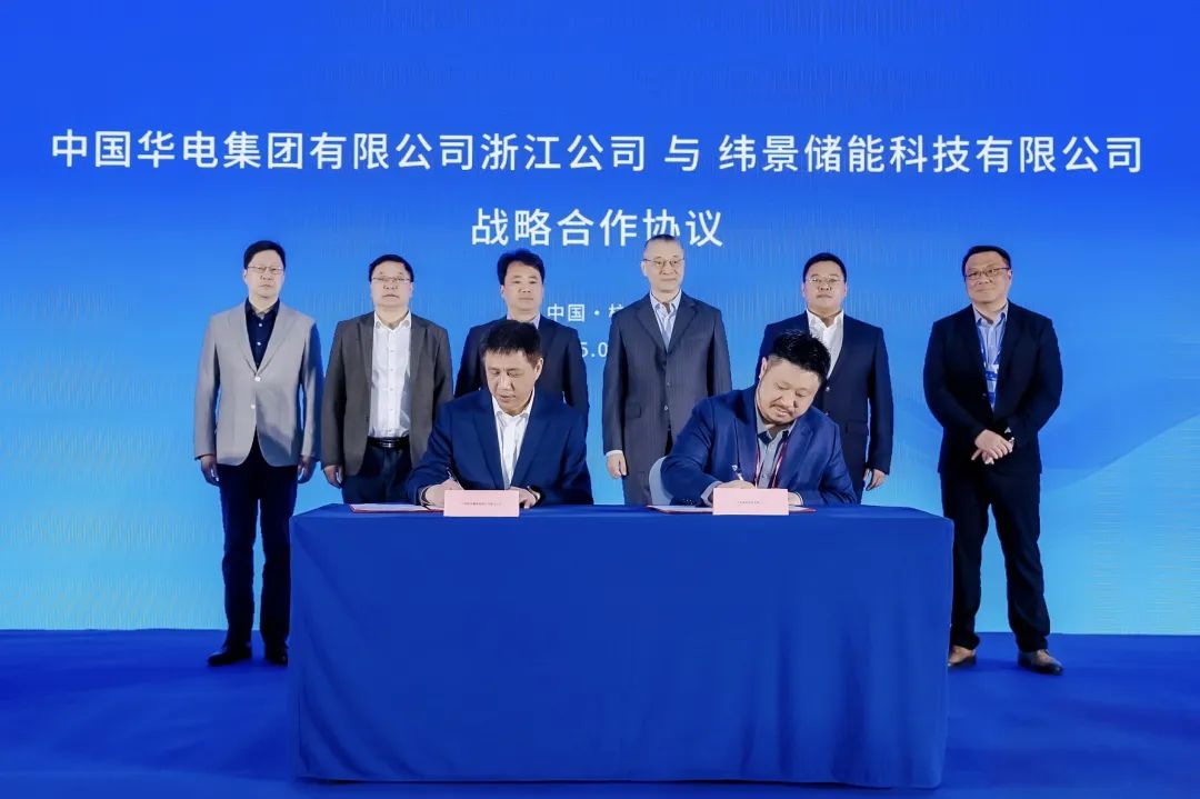 中國(guó)華電集團(tuán)浙江公司黨委委員、副總經(jīng)理梁海寧和緯景儲(chǔ)能科技有限公司聯(lián)合創(chuàng)始人劉雷代表雙方簽署協(xié)議。