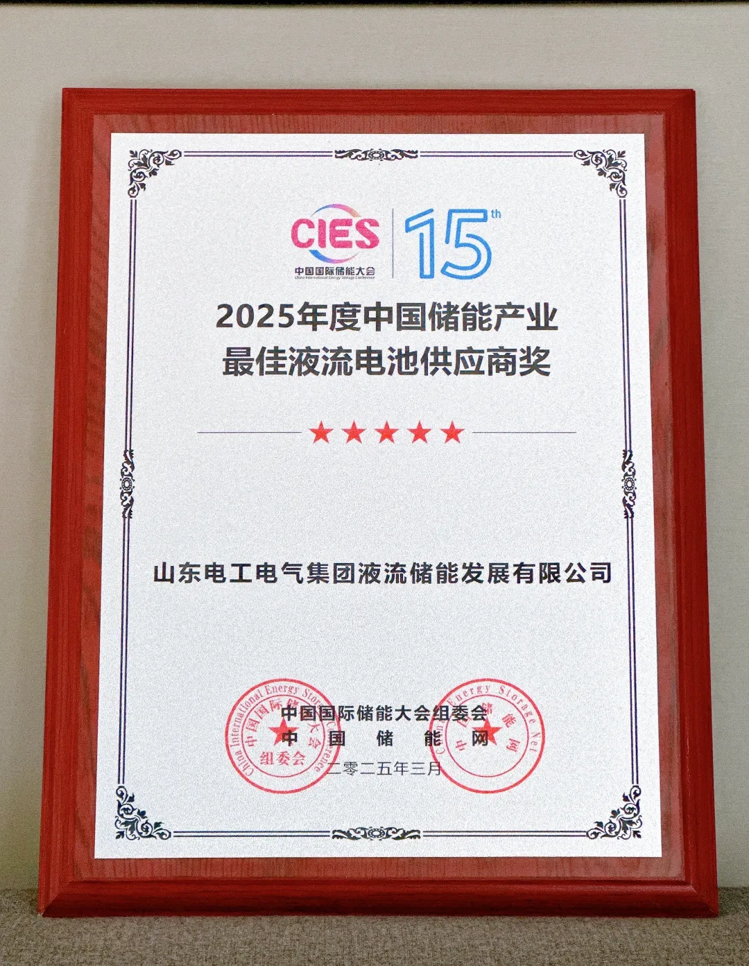 中國儲能網(wǎng)訊:2025年3月23日晚,在第十五屆中國國際儲能大會暨展覽會上,山東電工液儲憑借其在液流電池領(lǐng)域的卓越貢獻和持續(xù)創(chuàng)新,在眾多競爭對手中脫穎而出,榮獲“2025年度中國儲能產(chǎn)業(yè)最佳液流電池供應(yīng)商獎”!