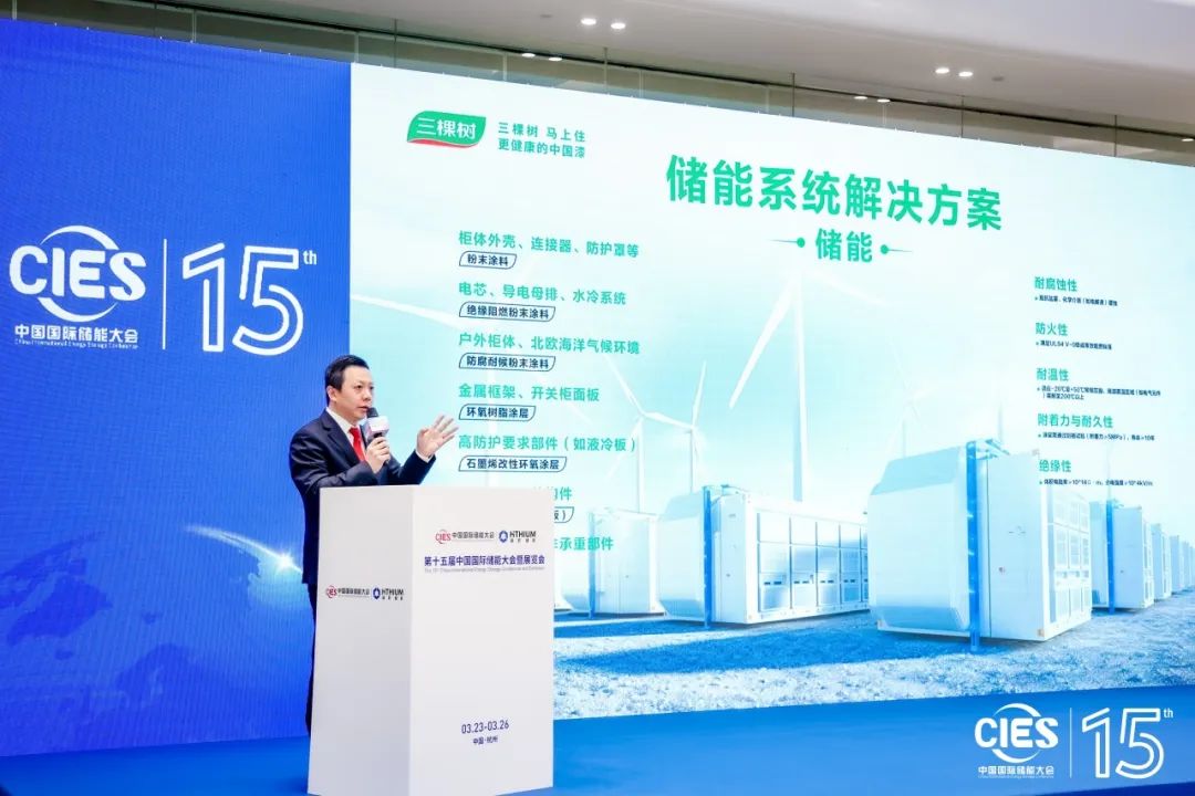 本屆大會(huì)聚焦儲(chǔ)能領(lǐng)域全球前沿技術(shù)和實(shí)踐,探索儲(chǔ)能產(chǎn)業(yè)高質(zhì)量發(fā)展新路徑。在“數(shù)智化新型儲(chǔ)能系統(tǒng)集成解決方案”專場(chǎng),三棵樹(shù)工業(yè)涂料事業(yè)部總經(jīng)理繆寧發(fā)表題為《高新材料應(yīng)用于新型儲(chǔ)能系統(tǒng)的探索與應(yīng)用》的主題演講。
