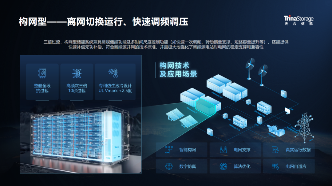 中國儲能網(wǎng)訊:2024年,國家能源局發(fā)布《關(guān)于做好新能源消納工作保障新能源高質(zhì)量發(fā)展的通知》,明確構(gòu)網(wǎng)型新型能源系統(tǒng)在網(wǎng)架結(jié)構(gòu)薄弱地區(qū)的建設(shè)需求,積極打造電力系統(tǒng)瞬時功率支撐能力,支撐電網(wǎng)持續(xù)接入風(fēng)光綠電。作為改善源網(wǎng)短路容量和轉(zhuǎn)動慣量缺失問題的創(chuàng)新型方案,構(gòu)網(wǎng)型儲能正式邁向發(fā)展快車道,天合洞察市場前沿,前瞻性布局先進技術(shù)能力,近期基于自研自制儲能系統(tǒng)完成黑啟動及構(gòu)網(wǎng)型儲能實證測試。
