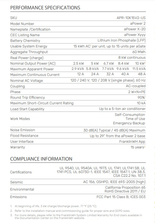 Franklin報告稱,aPower 2具有15kWh的容量和10kW的連續(xù)輸出功率,以及增強(qiáng)的aGate以及集成能源和FranklinWH電池的智能管理設(shè)備。它可以儲存來自太陽能、電網(wǎng)、發(fā)電機(jī)和電動汽車的電力。aPower 2的保修期為15年或60MWh吞吐量。