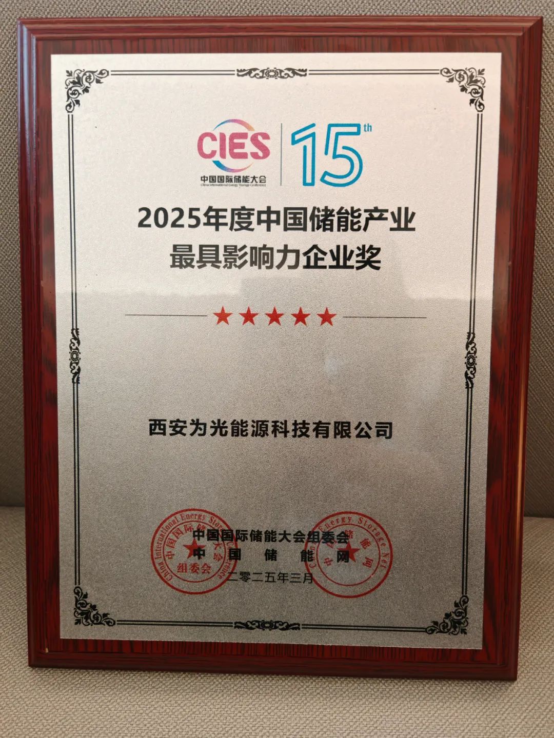 中國儲能網(wǎng)訊:3月23日,由中國化學(xué)與物理電源行業(yè)協(xié)會主辦的第十五屆中國國際儲能大會 (CIES2025)在杭州盛大開幕。為光能源受邀出席此次會議,并憑借行業(yè)領(lǐng)先的技術(shù)實(shí)力成功斬獲“2025年度中國儲能產(chǎn)業(yè)最具影響力企業(yè)”大獎。