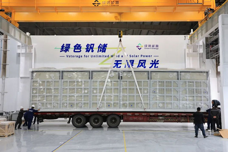 中國儲能網(wǎng)訊:3月28日,北京綠釩1MW/2MWh全釩液流電池系統(tǒng)正式裝車發(fā)貨!