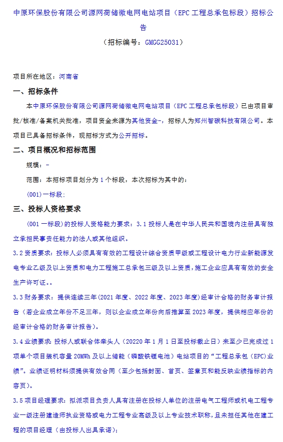 要求投標(biāo)人或聯(lián)合體牽頭人(20220年1月1日至投標(biāo)截止日)來至少已完成過1項(xiàng)單個(gè)項(xiàng)目裝機(jī)容量20MWh及以上儲(chǔ)能(磷酸鐵鋰電池)電站項(xiàng)目的“工程總承包(EPC)業(yè)績(jī)”。