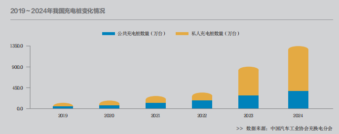 根據中國電動汽車充電基礎設施促進聯盟的統計,截至2024年12月底,我國電動汽車充電設施總數達到1281.8萬臺,同比增長49.1%;其中公共充電設施357.9萬臺,私人充電設施923.9萬臺。按照2025年1月公安部發(fā)布的全國新能源汽車保有量3140萬輛計算,我國車樁比為2.44:1。2024年,我國電動汽車充電設施增量為422.2萬臺,月均增長35.2萬臺。全年充電量突破1100億千瓦時,同比增長38%。全國高速公路服務區(qū)累計建成充電樁3.5萬臺,服務區(qū)覆蓋率達到98%。