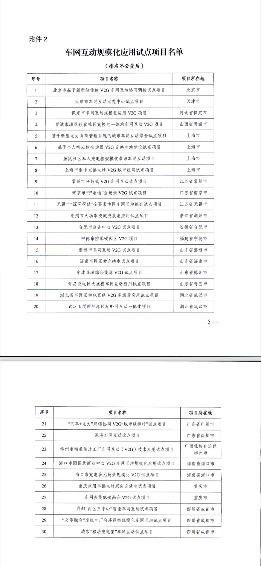 中國儲能網(wǎng)訊:近日,國家發(fā)改委、國家能源局等四部委聯(lián)合印發(fā)《關(guān)于公布首批車網(wǎng)互動規(guī)?;瘧?yīng)用試點的通知》,確定了上海市、常州市、合肥市、淮北市、廣州市、深圳市、??谑?、重慶市、昆明市9個車網(wǎng)互動規(guī)模化應(yīng)用試點城市,以及“北京市基于新型儲能的V2G車網(wǎng)互動協(xié)同調(diào)控試點項目、無錫市“源網(wǎng)荷儲”全要素協(xié)同車網(wǎng)互動綜合試點項目、車網(wǎng)多能低碳融合V2G試點項目、“交能融合”虛擬電廠有序調(diào)控規(guī)?;嚲W(wǎng)互動試點項目”等30個試點項目。