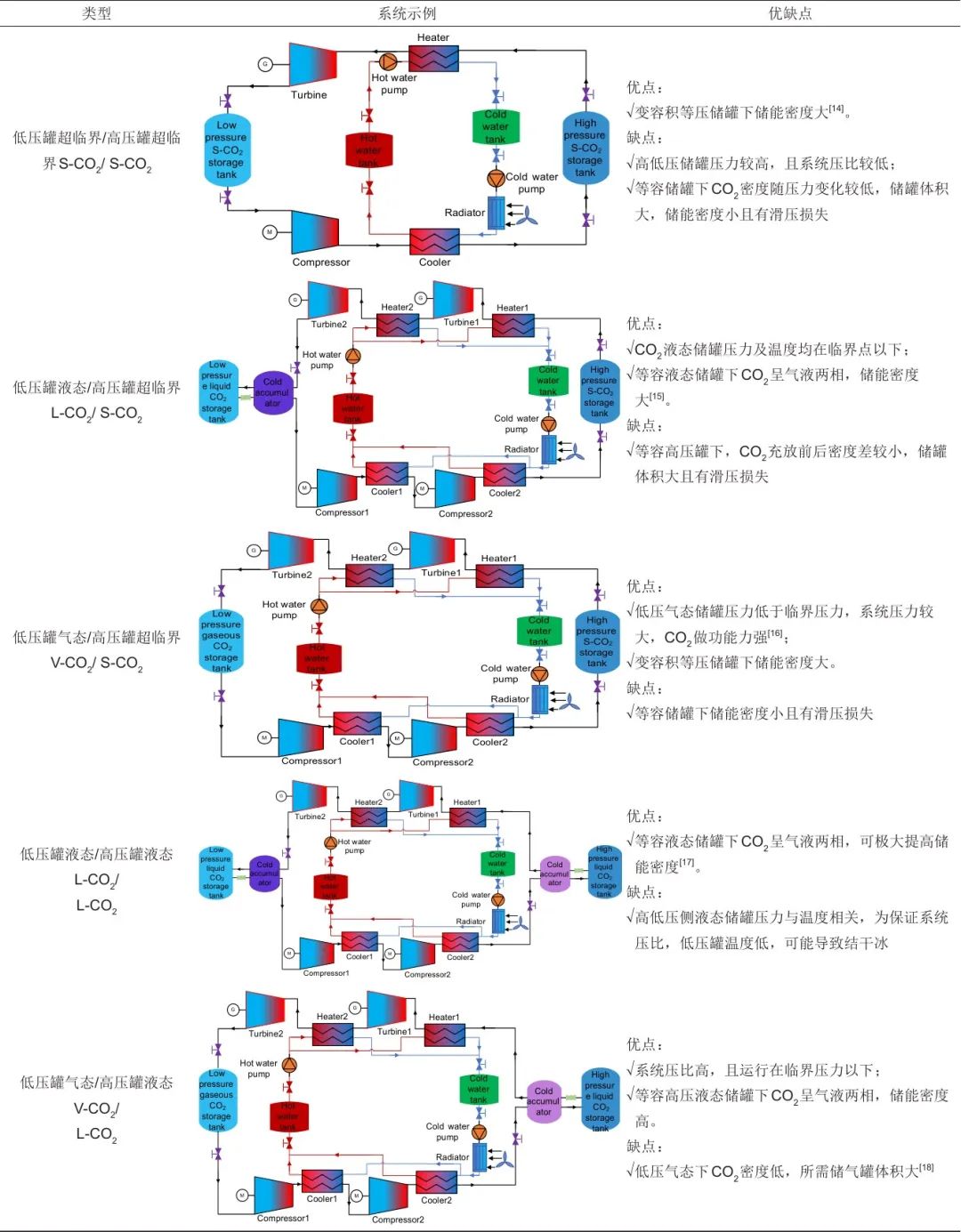 表1 壓縮CO2儲能系統(tǒng)分類及結(jié)構(gòu)示例