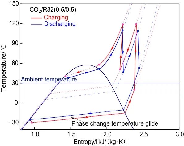 圖17 基于兩級壓縮-兩級膨脹的CO2混合工質(zhì)液態(tài)儲能溫熵曲線