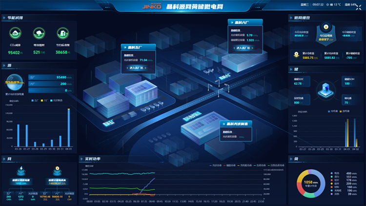 微電網(wǎng)是一種基于數(shù)智化能源管理平臺的智慧能源解決方案,可廣泛應(yīng)用于產(chǎn)城融合度高、土地資源集約利用度高、以加工制造業(yè)為主的工業(yè)園區(qū) 。響應(yīng)國家發(fā)展改革委、國家能源局《關(guān)于推進(jìn)電力源網(wǎng)荷儲一體化和多能互補(bǔ)發(fā)展的指導(dǎo)意見》中關(guān)于“在工業(yè)負(fù)荷大、新能源條件好的地區(qū)開展源網(wǎng)荷儲一體化綠色供電園區(qū)建設(shè)”的倡議,晶科科技源網(wǎng)荷儲微電網(wǎng)擬接入三處工業(yè)園區(qū)的分布式電源,可接入容量預(yù)計最高可突破70MW,同時廠區(qū)配備多臺儲能設(shè)備、充電樁。
