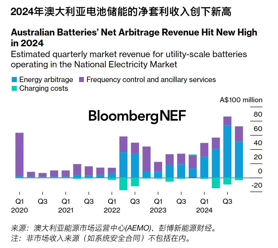 2024年國(guó)家電力市場(chǎng)(NEM)中大型電池儲(chǔ)能獲得的凈套利收入同比增幅
