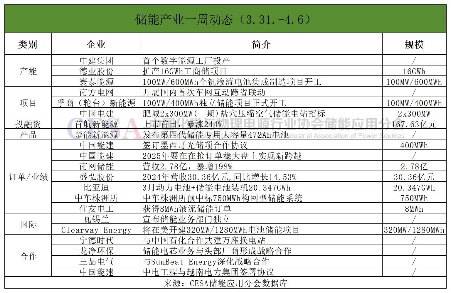 訂單/業(yè)績(jī)方面,比亞迪3月動(dòng)力電池+儲(chǔ)能電池裝機(jī)20.347GWh;南網(wǎng)儲(chǔ)能2024年?duì)I收2.78億,暴增198%;中車(chē)株洲所預(yù)中標(biāo)750MWh構(gòu)網(wǎng)型儲(chǔ)能系統(tǒng);住友電工獲得8MWh液流儲(chǔ)能訂單;中國(guó)能建董事長(zhǎng)表示,2025年要在在搶訂單穩(wěn)大盤(pán)上實(shí)現(xiàn)新跨越。