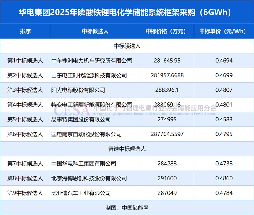 3月鋰電儲(chǔ)能系統(tǒng)集采/框采入圍報(bào)價(jià)區(qū)間為0.4583-0.4807元/Wh,均價(jià)0.4751元/Wh,主要來(lái)自于華電集團(tuán)2025年磷酸鐵鋰電化學(xué)儲(chǔ)能系統(tǒng)框采,中車(chē)株洲所、電工時(shí)代、陽(yáng)光電源、特變電工、易事特、國(guó)電南自、華電科工、海博思創(chuàng)、比亞迪成功入圍。