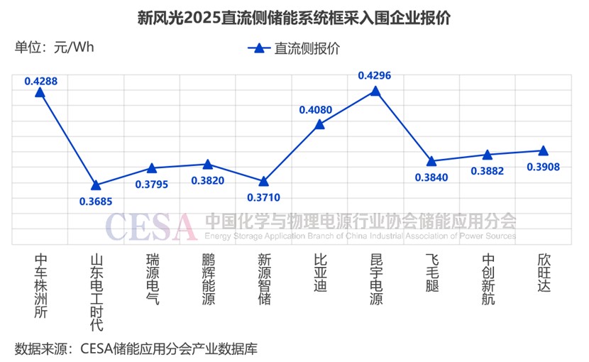 3月,直流側(cè)儲(chǔ)能系統(tǒng)集采/框采入圍投標(biāo)報(bào)價(jià)在0.3685-0.4296元/Wh范圍內(nèi),均價(jià)0.3931元/Wh。該報(bào)價(jià)主要來(lái)自于新風(fēng)光電子科技股份有限公司2025年儲(chǔ)能采購(gòu)招標(biāo)標(biāo)段一1GWh直流側(cè)系統(tǒng)采購(gòu),中車(chē)株洲所、山東電工時(shí)代、瑞源電氣、鵬輝能源、新源智儲(chǔ)、比亞迪、昆宇電源、飛毛腿、中創(chuàng)新航、欣旺達(dá)成功入圍。
