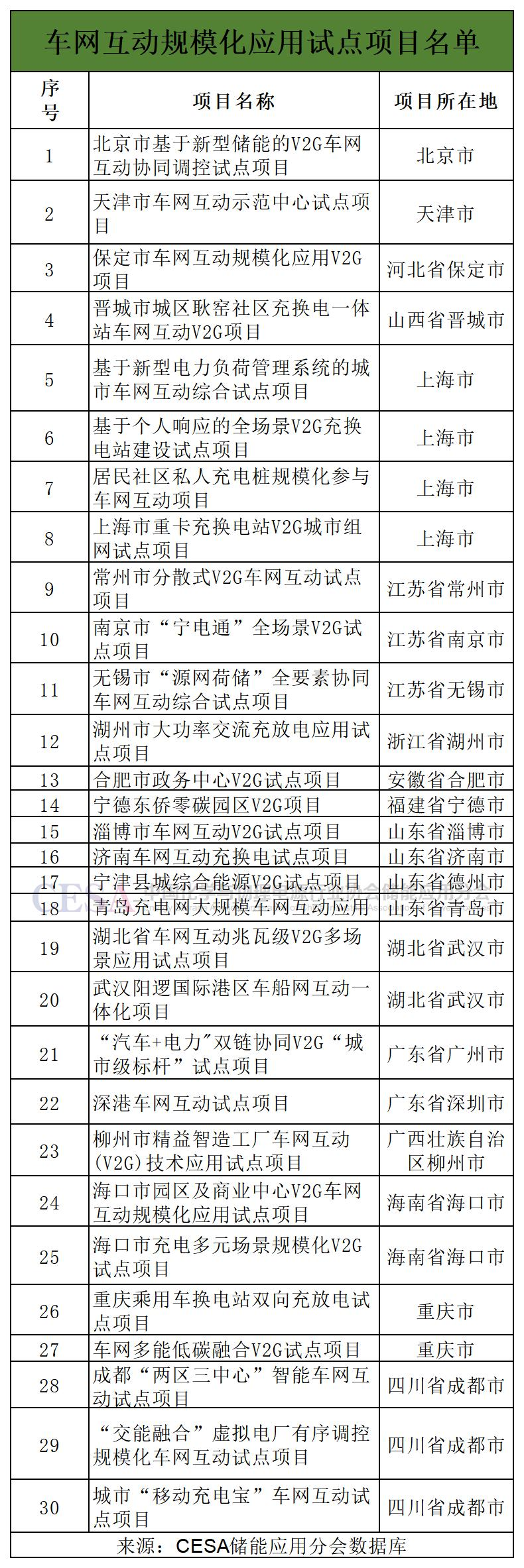 中國(guó)儲(chǔ)能網(wǎng)訊:近日,國(guó)家發(fā)展改革委、國(guó)家能源局等四部門近日聯(lián)合印發(fā)《關(guān)于公布首批車網(wǎng)互動(dòng)規(guī)?;瘧?yīng)用試點(diǎn)的通知》,確定9個(gè)車網(wǎng)互動(dòng)規(guī)?;瘧?yīng)用試點(diǎn)城市、30個(gè)試點(diǎn)項(xiàng)目。
