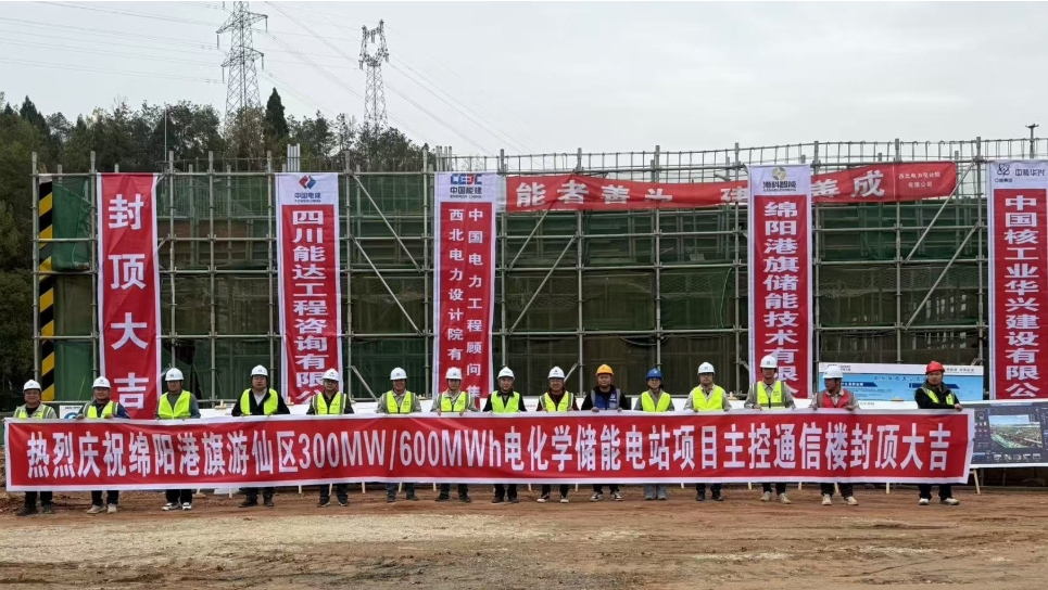 中國儲能網(wǎng)訊:近日,中國能建西北院總承包的綿陽港旗游仙區(qū)300兆瓦/600兆瓦時電化學(xué)儲能電站項目(一期)主控通信樓封頂。
