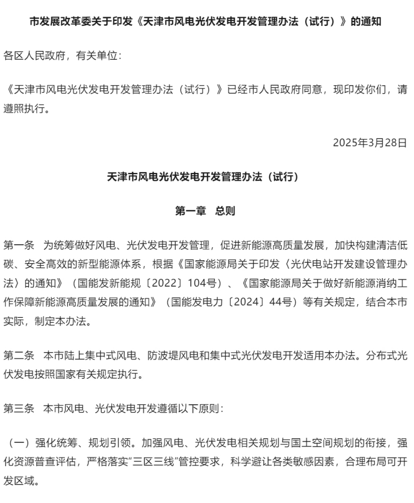 近日,天津市發(fā)展改革委發(fā)布的《天津市風(fēng)電光伏發(fā)電開發(fā)管理辦法(試行)》(下稱《辦法》)引發(fā)廣泛關(guān)注,其刪除配儲(chǔ)相關(guān)要求的舉措,成為當(dāng)?shù)匦履茉凑咚山壍闹匾盘?hào)。