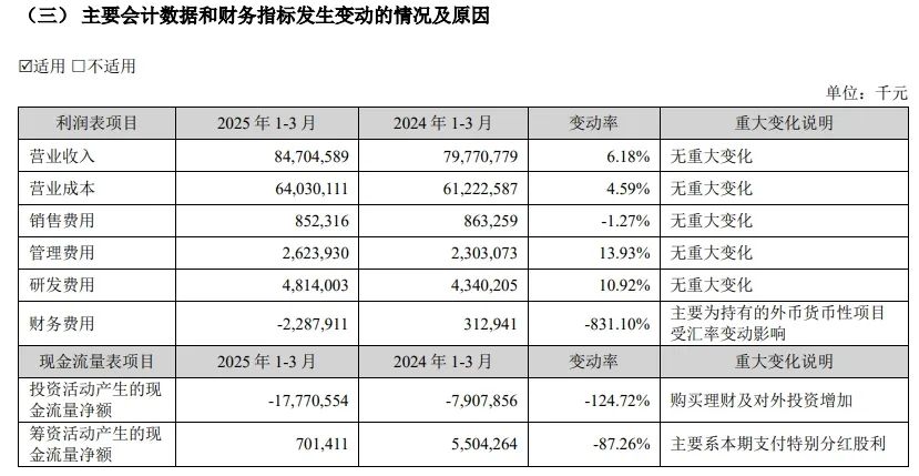 此外,財報顯示,一季度公司研發(fā)投入達到48.14億元,同比增長10.92%。
