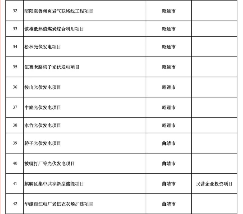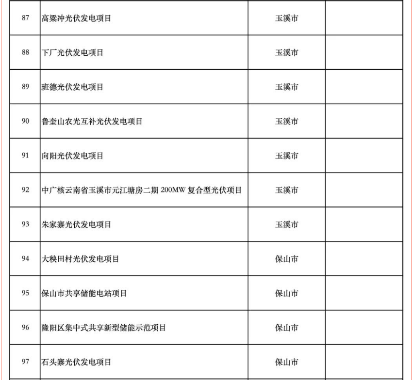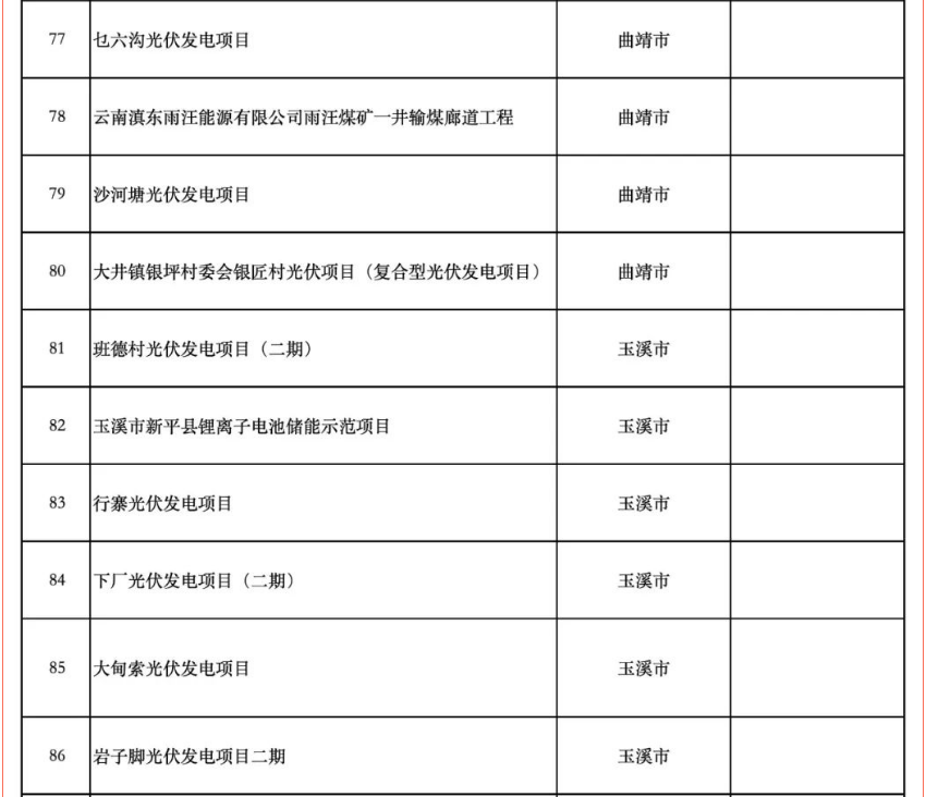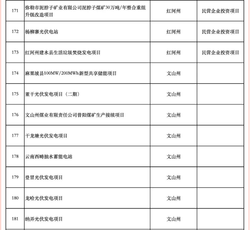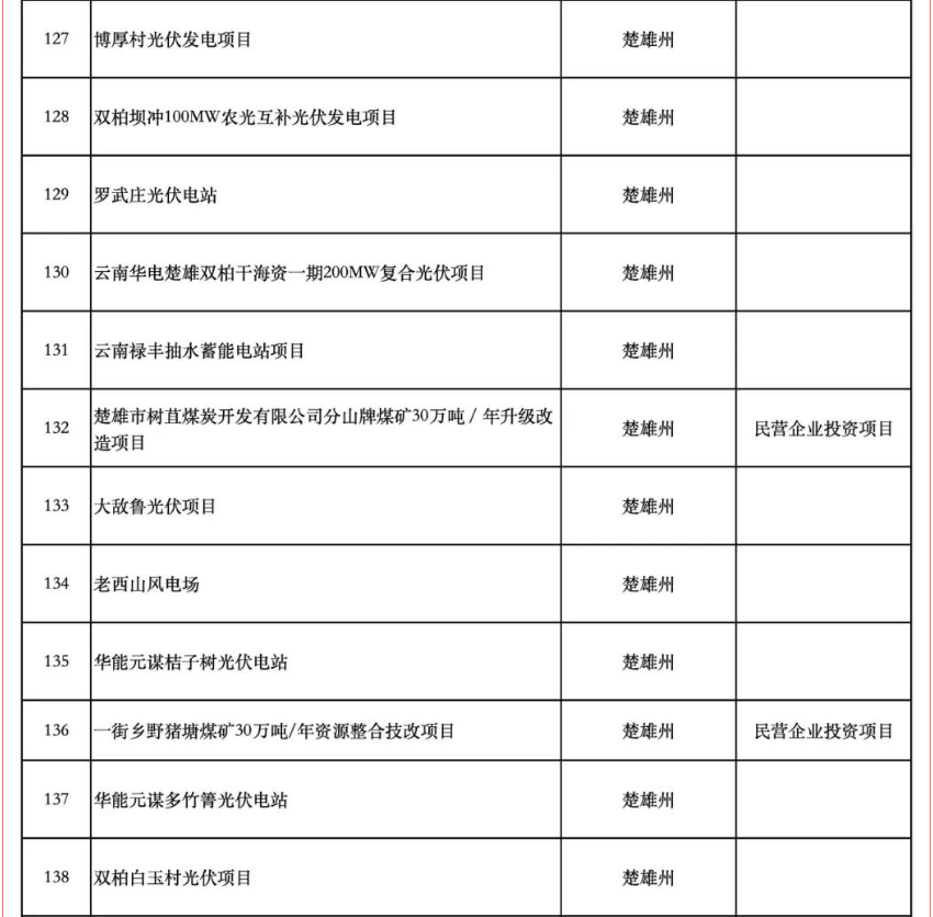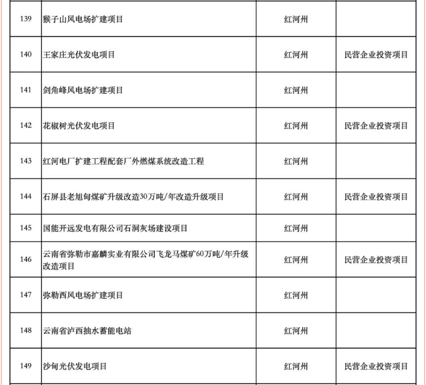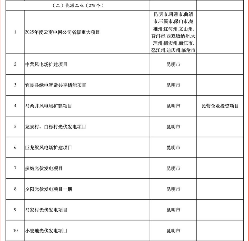 中國(guó)儲(chǔ)能網(wǎng)訊:4月12日,云南省發(fā)改委公布云南省2025年度省級(jí)重大項(xiàng)目清單和“重中之重”項(xiàng)目清單。重大項(xiàng)目清單涉及1775個(gè)項(xiàng)目,其中,能源工業(yè)項(xiàng)目275個(gè)。包含10個(gè)光伏制造項(xiàng)目,210個(gè)光伏發(fā)電項(xiàng)目;風(fēng)電項(xiàng)目18個(gè)?!爸刂兄亍表?xiàng)目清單共計(jì)76個(gè),涉及風(fēng)電項(xiàng)目3個(gè),規(guī)模共計(jì)1.01GW。
