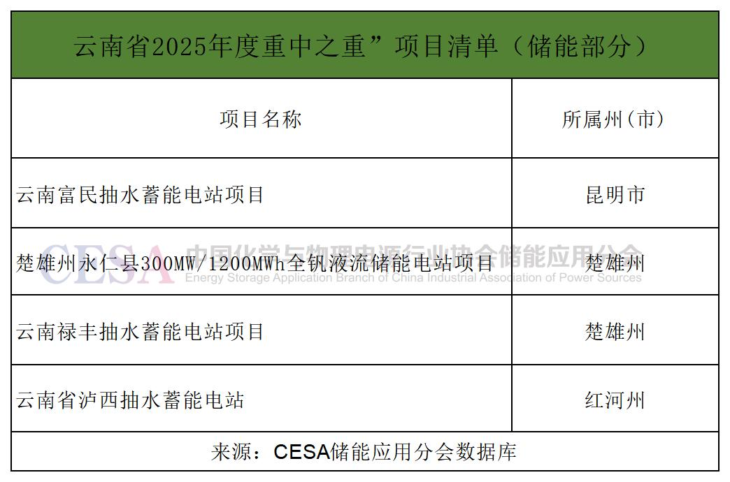 云南省發(fā)展改革委員會(huì)發(fā)布的《云南省2025年度省級(jí)重大項(xiàng)目清單和“重中之重”項(xiàng)目清單》中,“重中之重”項(xiàng)目共76個(gè),這里面含能源工業(yè)項(xiàng)目11個(gè),楚雄州1.2GWh全釩液流儲(chǔ)能電站項(xiàng)目和3個(gè)抽水蓄能電站項(xiàng)目位列其中。