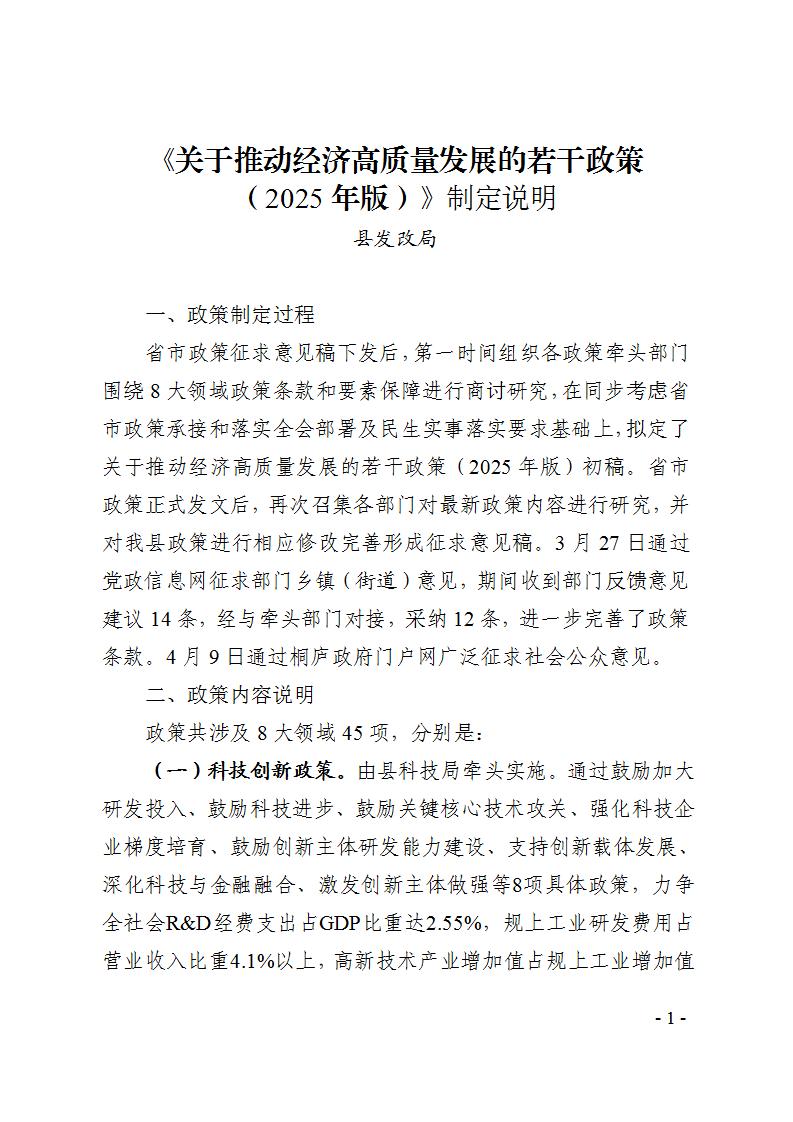 《關(guān)于推動經(jīng)濟高質(zhì)量發(fā)展的若干政策(2025年版)》制定說明.doc