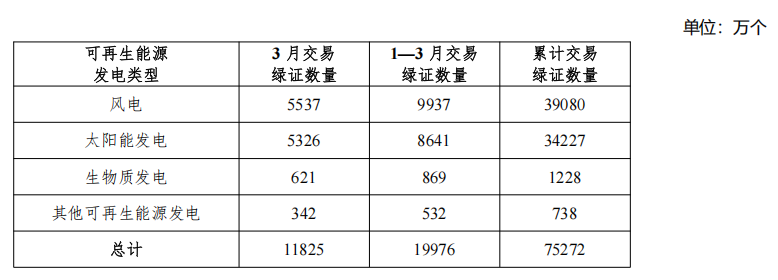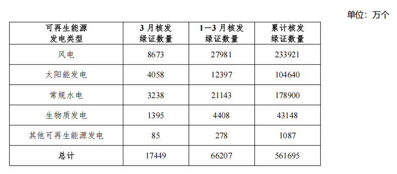 2025年1-3月,國家能源局共計核發(fā)綠證6.62億個,其中可交易綠證4.56億個。截至2025年3月,全國累計核發(fā)綠證56.17億個,其中可交易綠證38.35億個。