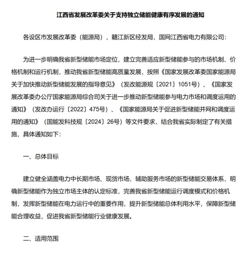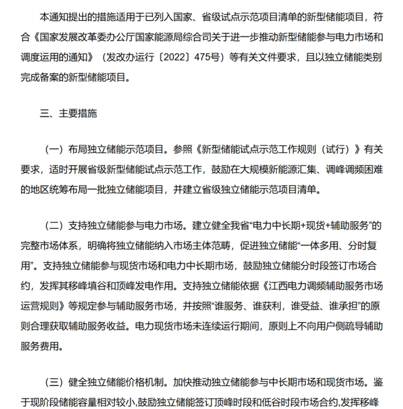 中國(guó)儲(chǔ)能網(wǎng)訊:江西省發(fā)改委4月16日印發(fā)的《關(guān)于支持獨(dú)立儲(chǔ)能健康有序發(fā)展的通知》,在全國(guó)率先構(gòu)建起"電力中長(zhǎng)期+現(xiàn)貨+輔助服務(wù)"三位一體市場(chǎng)體系,為獨(dú)立儲(chǔ)能參與電力市場(chǎng)開辟了全新路徑。
