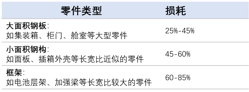 油漆損耗多少與零件的長寬比,是否有異形狀(圓弧,缺口,凹凸等)有很大關(guān)系,具體參考下表數(shù)據(jù)
