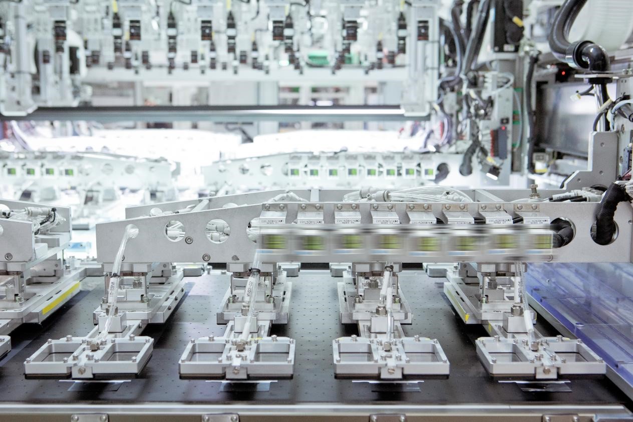 (圖示)這是最核心的,我們的飛疊,因為在疊片和卷繞對比中,疊片這個工序里的生產(chǎn)效率是最大的瓶頸,這是比較低的。我們現(xiàn)在是0.125秒,是第三代,第四代是0.08,現(xiàn)在正在加緊進(jìn)行量產(chǎn)前的準(zhǔn)備工作。