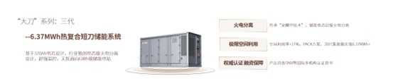 (圖示)這是我們基于370Ah做的6.37MWh的短刀儲能,這個產(chǎn)品沿用了動力電池的技術(shù),電芯、防爆閥在兩側(cè),在不同的方向上。