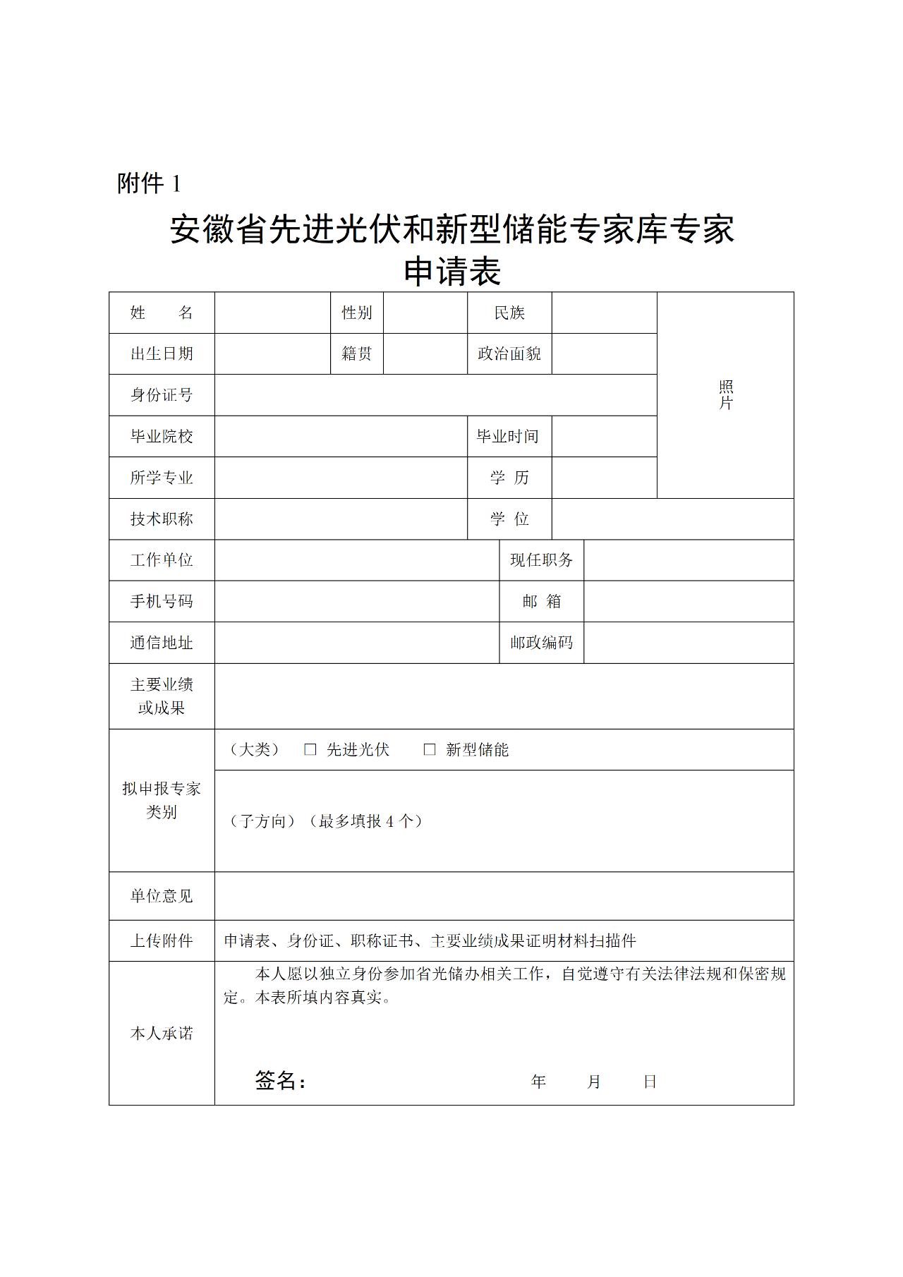 附件:1. 安徽省先進(jìn)光伏和新型儲(chǔ)能專家?guī)鞂<疑暾?qǐng)表