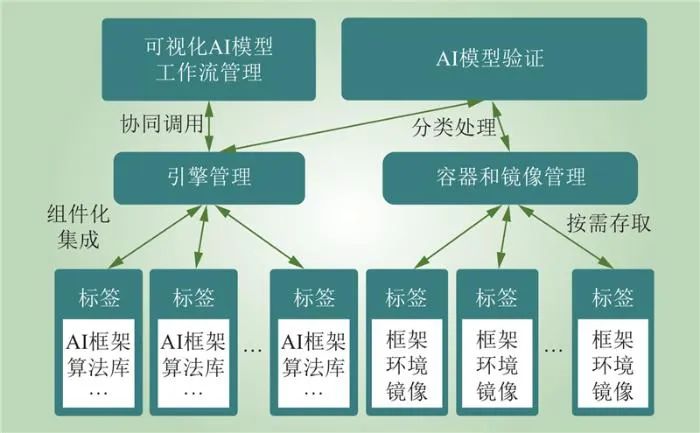 2)對(duì)于更多的AI框架和算法庫(kù)以及運(yùn)行環(huán)境要求,則事先封裝為鏡像,使用時(shí)按需分配容器,載入相關(guān)鏡像。