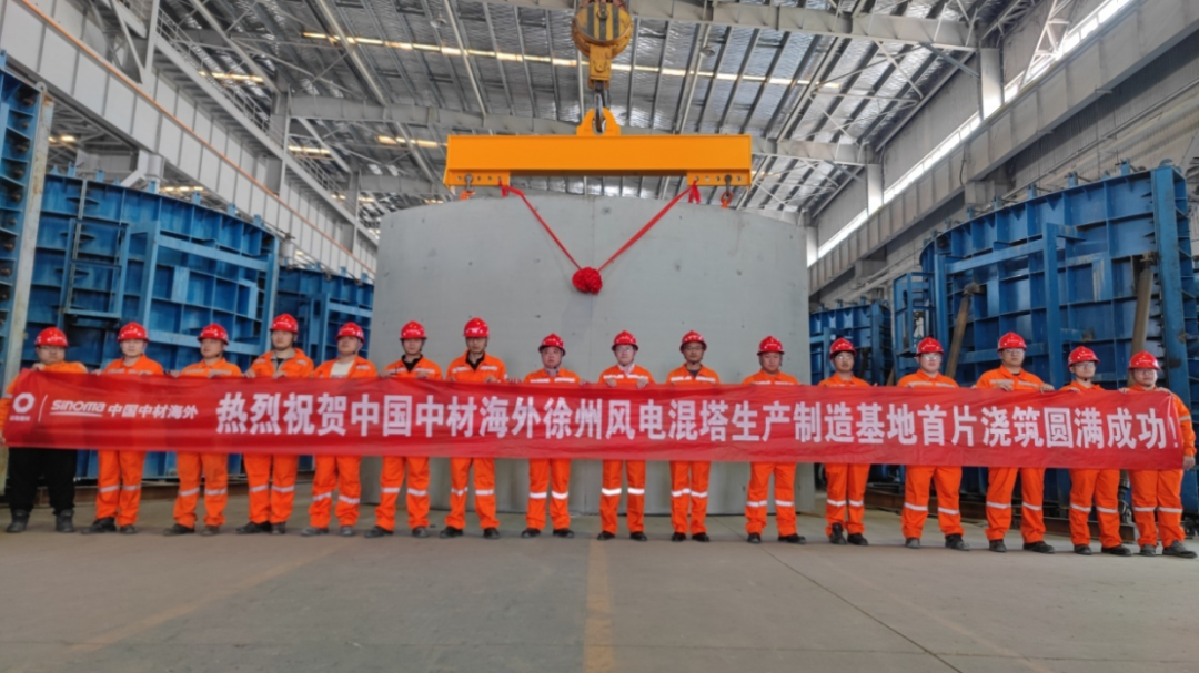 中材海外徐州風(fēng)電混塔制造基地首片澆筑成功下線