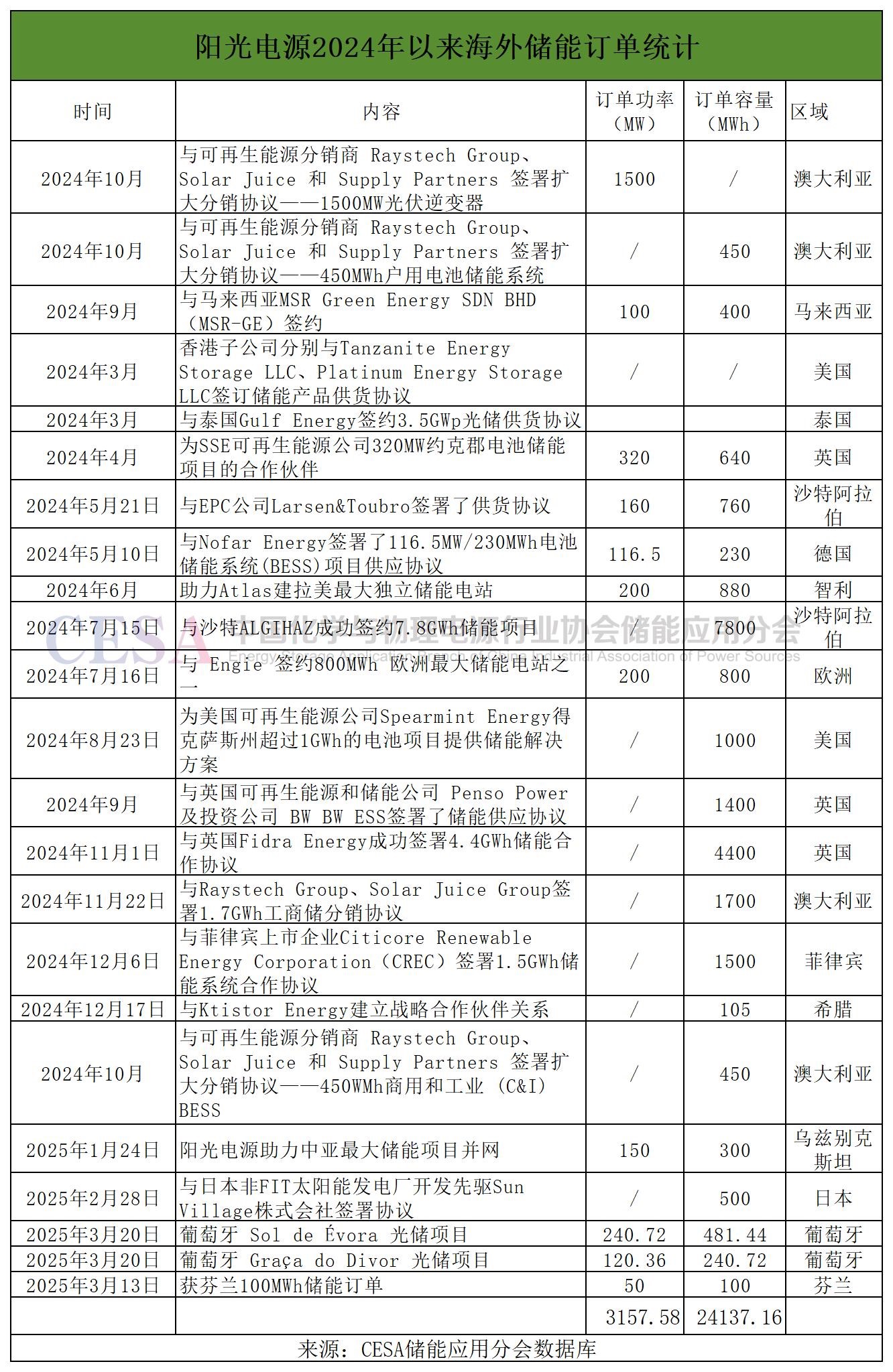 “目前公司儲(chǔ)能系統(tǒng)廣泛應(yīng)用在歐洲、美洲、中東、亞太等成熟電力市場(chǎng),不斷強(qiáng)化風(fēng)光儲(chǔ)深度融合?!标?yáng)光電源在年報(bào)中指出,“公司與Algihaz簽約了7.8GWh中東標(biāo)桿儲(chǔ)能項(xiàng)目,與英國(guó)Fidra Energy簽署4.4GWh歐洲最大儲(chǔ)能合作協(xié)議,與Atlas簽約了880MWh拉美最大獨(dú)立儲(chǔ)能電站,與CREC簽約菲律賓1.5 GWh電池儲(chǔ)能協(xié)議。”